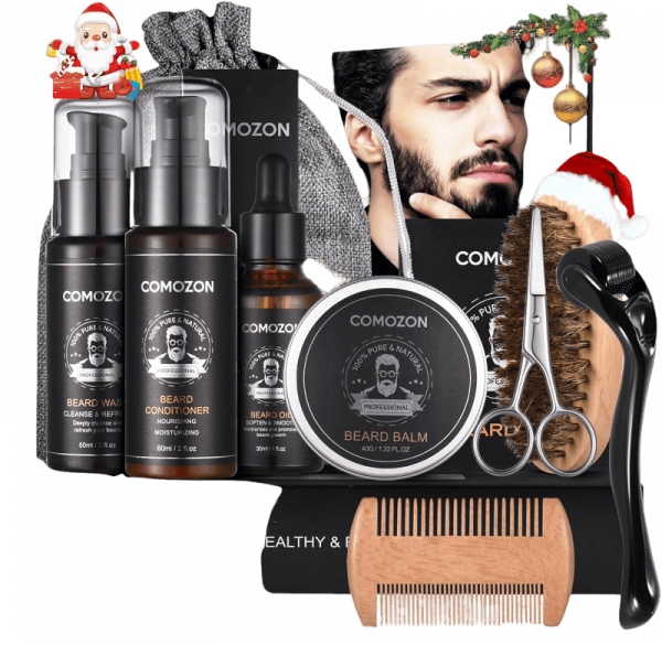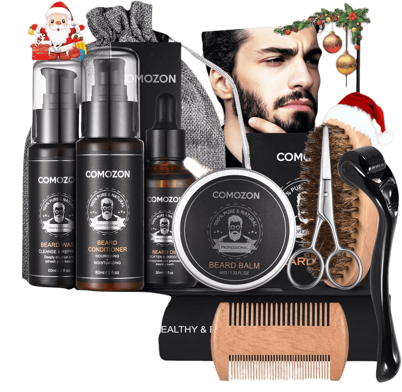 Cuidado 12 En 1 Con máquina de afeitar, aceite, Cepillo, champú, peine y bálsamo. Barba,100% Natural.