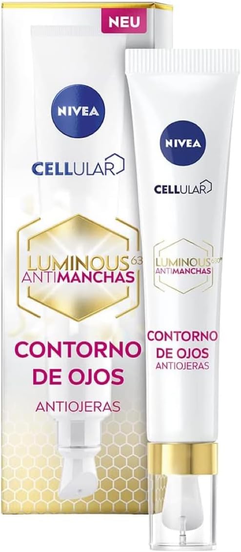 Gracias a Luminous630, esta crema facial anti edad trata la pigmentación irregular reduciendo las ojeras para conseguir un tono uniforme. La fórmula de esta crema anti ojeras contiene cafeína energizante, por lo que deshincha la mirada cansada reduciendo bolsas. Esta crema facial anti manchas contiene ácido hialurónico, por lo que hidrata la piel y reduce arrugas y líneas de expresión. El corrector anti ojeras de NIVEA es apto para todo tipo de piel, y está dermatológicamente y oftalmológicamente comprobado.