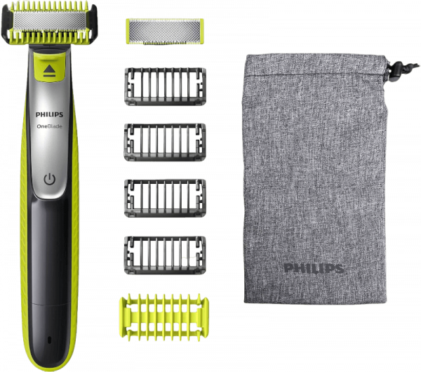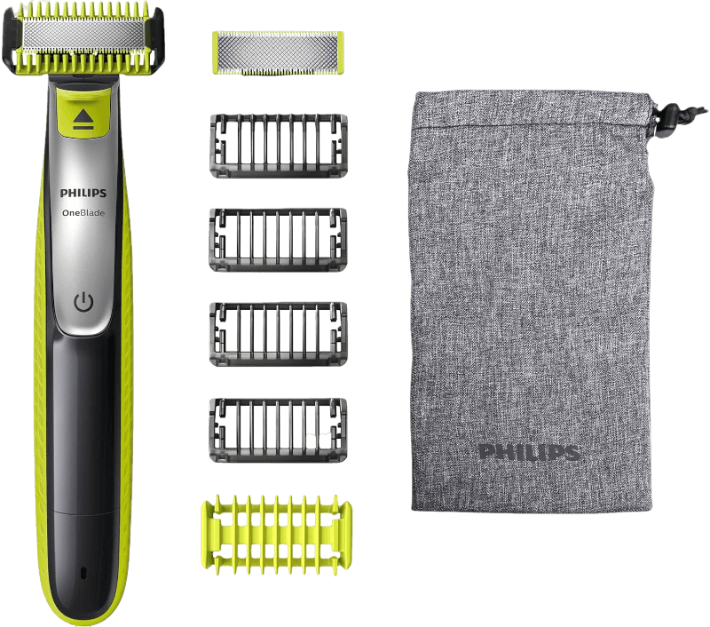 Incluye una hoja para el cuerpo con un protector para la piel y las zonas sensibles; ya no tendrás que utilizar varios productos, OneBlade se encarga de todo. Recorta, perfila y afeita cualquier longitud de pelo y crea líneas precisas y definidas con la cuchilla de doble cara. Uso en seco o en húmedo, incluso en la ducha. Incluye: 4 peines-guía para barba (1, 2, 3, 5 mm), protector para la piel, peine-guía para el cuerpo, cuchilla de recambio adicional y funda blanda