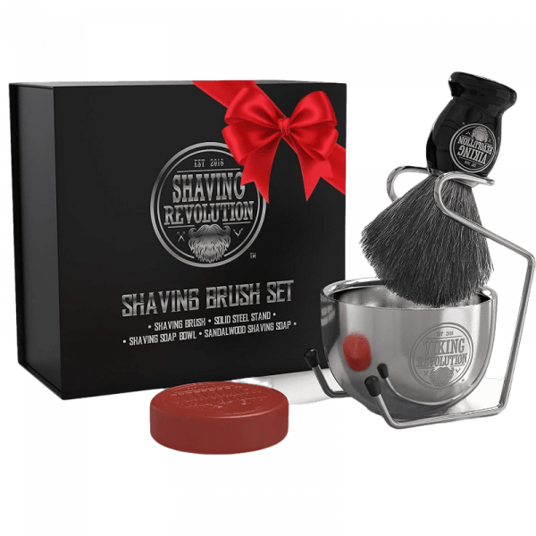 Cree una rica espuma perfecta con nuestra brocha de tejón 100% natural. El jabón de afeitar contiene 74 ml de aroma varonil de sándalo para dejar a esa persona especial enamorada de su cara. Nuestro cuenco de afeitado de acero inoxidable de alta calidad con aislamiento de doble pared durará muchos años. Mantenga su brocha y maquinilla de afeitar secas y con un aspecto elegante con este soporte de acero inoxidable para maquinillas de afeitar.