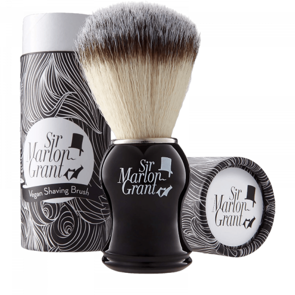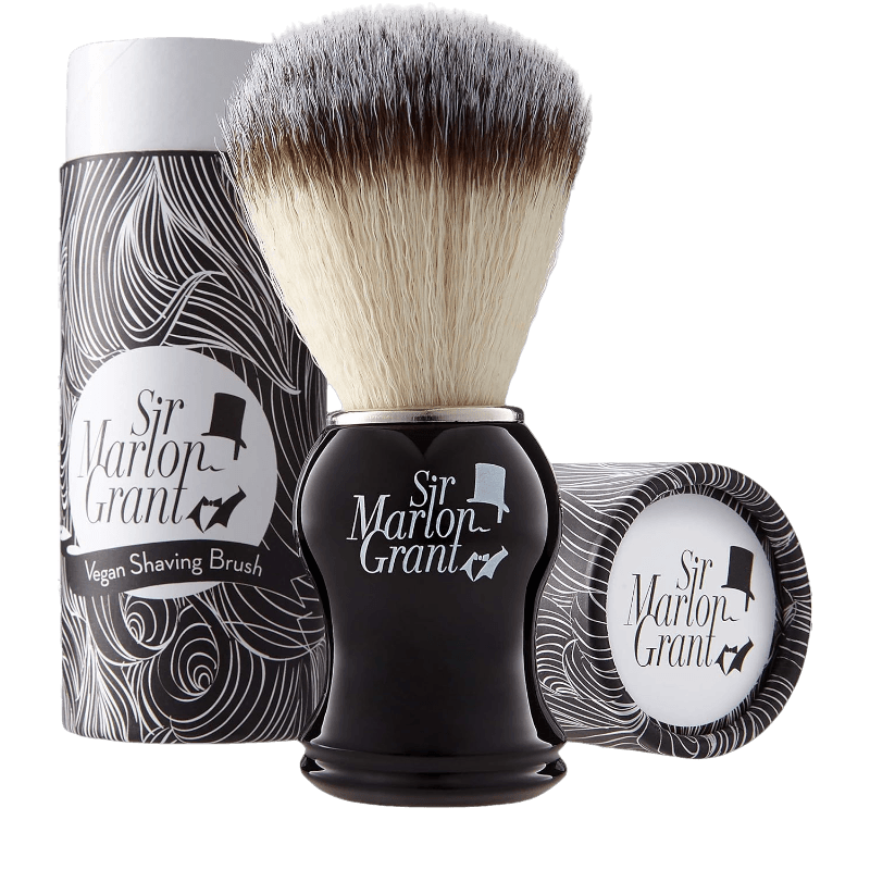 Brocha de afeitar vegana con cerdas sintéticas espesas y suaves de gran calidad. Mango ergonómico y con acabado de madera de ébano.