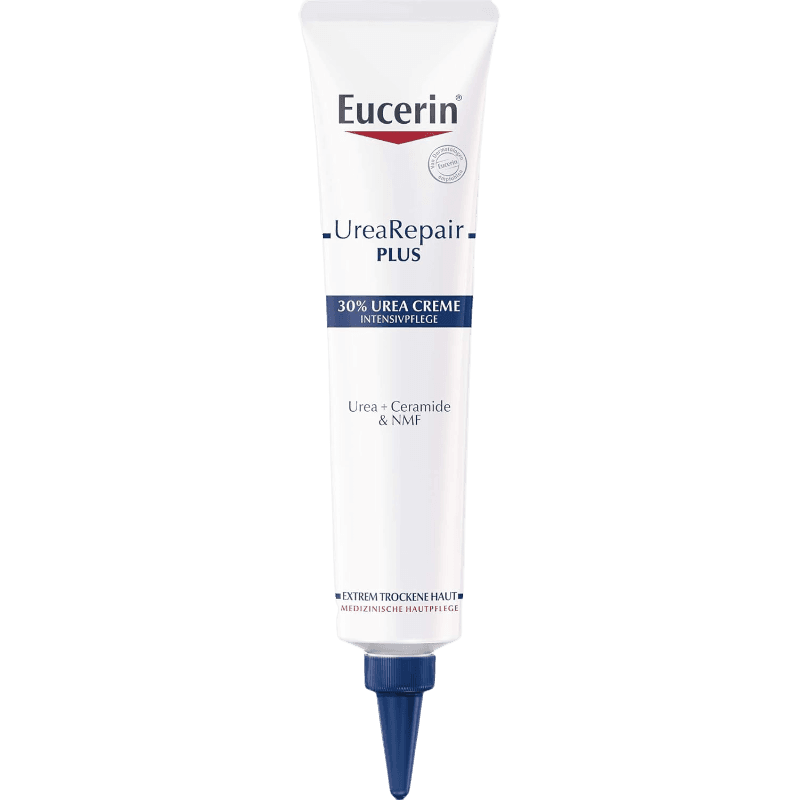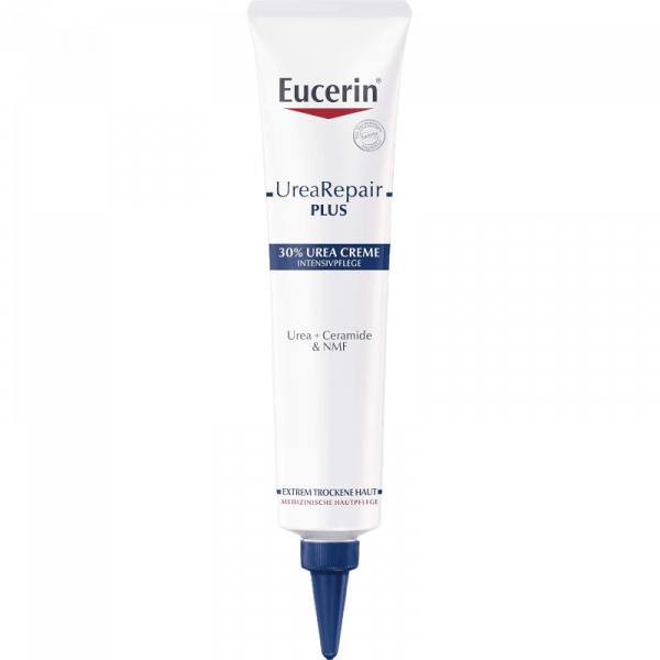 La piel muy seca puede tener aspecto y sensación de rigidez, enrojecimiento, rugosidad, descamación y picor. Cuando la piel está seca, su capacidad de mantener la hidratación y prevenir la pérdida de hidratación se ve reducida. Eucerin UreaRepair PLUS Crema 30% Urea proporciona suavidad y flexibilidad a la piel extremadamente seca, mediante la combinación única de ingredientes: Urea altamente concentrada al 30% con una acción exfoliante. Factores de hidratación Natural (NMF) hidratan y retienen el agua en la piel. Las Ceramidas reparan y restablecen la barrera cutánea. Los resultados de Eucerin UreaRepair PLUS Crema Tratamiento Localizado 30% Urea son visibles a partir de la primera semana. Los resultados mejoran con su uso continuado. Especialmente recomendado en zonas extremadamente secas, rugosas y engrosadas, especialmente en codos, pies, manos y rodillas muy secas. Indicada en el tratamiento de diversas patologías dermatológicas que cursen con hiperqueratosis, como psoriasis (en placas gruesas, o la forma hiperqueratósica palmo-plantar), queratodermias palmo-plantares, eccemas hiperqueratósicos, poroqueratosis, etc.